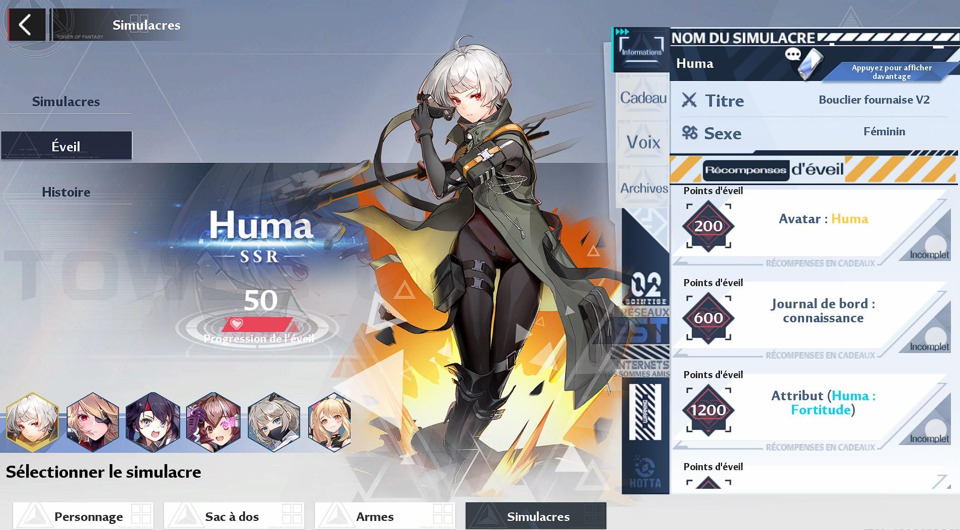 savoir lesquels donner au simulacre que vous souhaitez voir s’éveiller. Nous vous rappelons au passage que vous allez pouvoir débloquer des récompenses d’éveil à différents paliers,