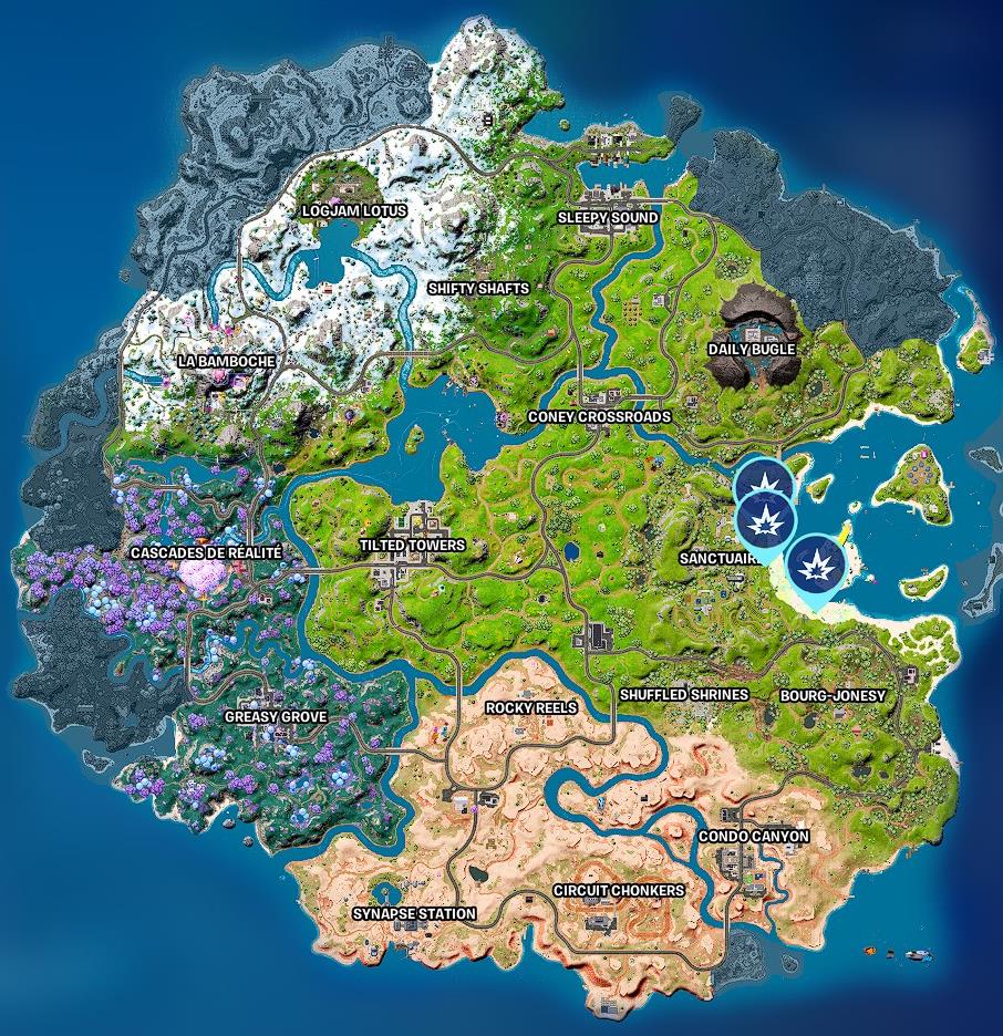 Pour réussir ce défi, vous allez devoir dans un premier temps vous rendre sur les plages se trouvant à l’est du Sanctuaire comme vous pouvez le voir sur la carte ci-dessous.