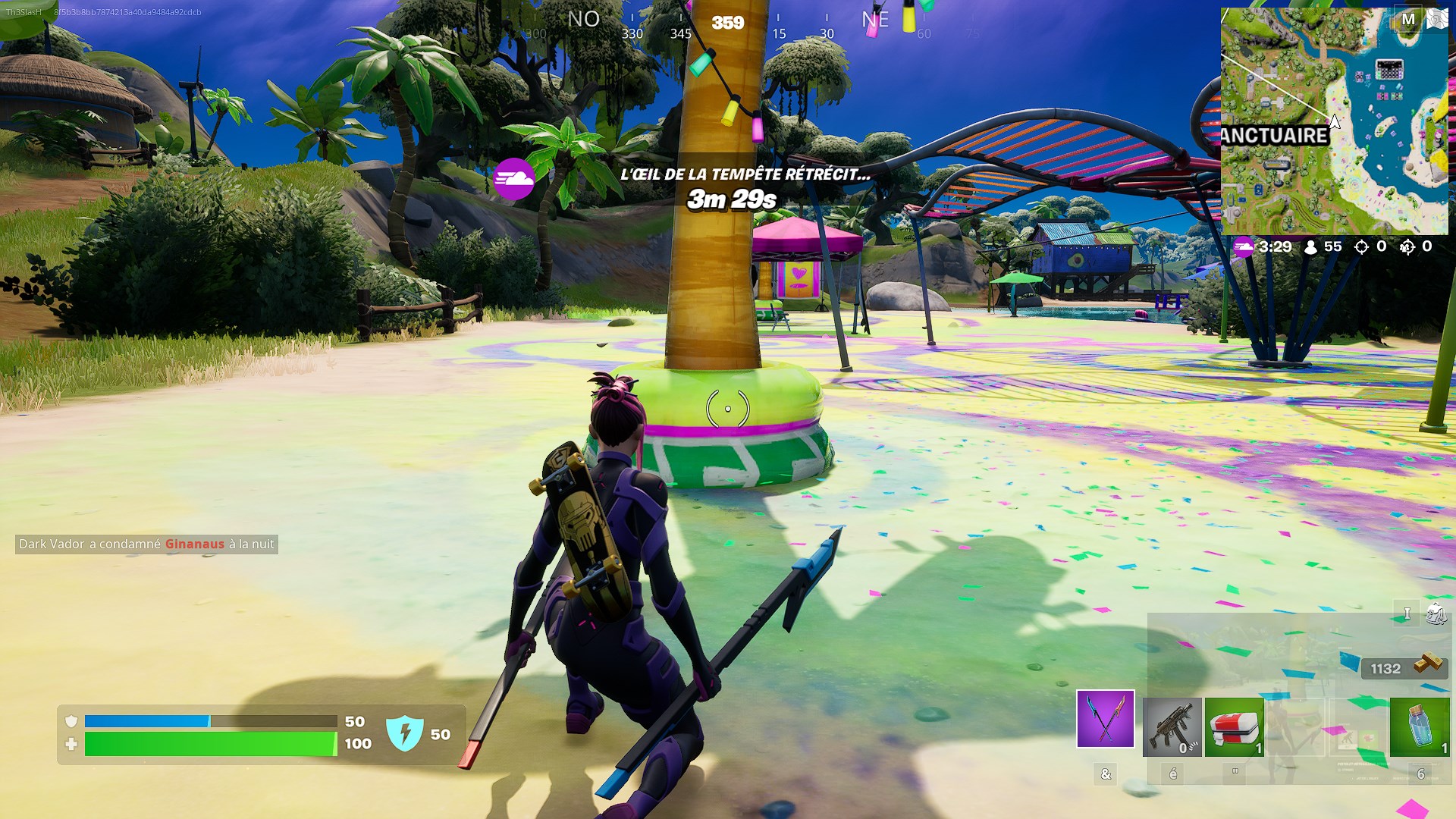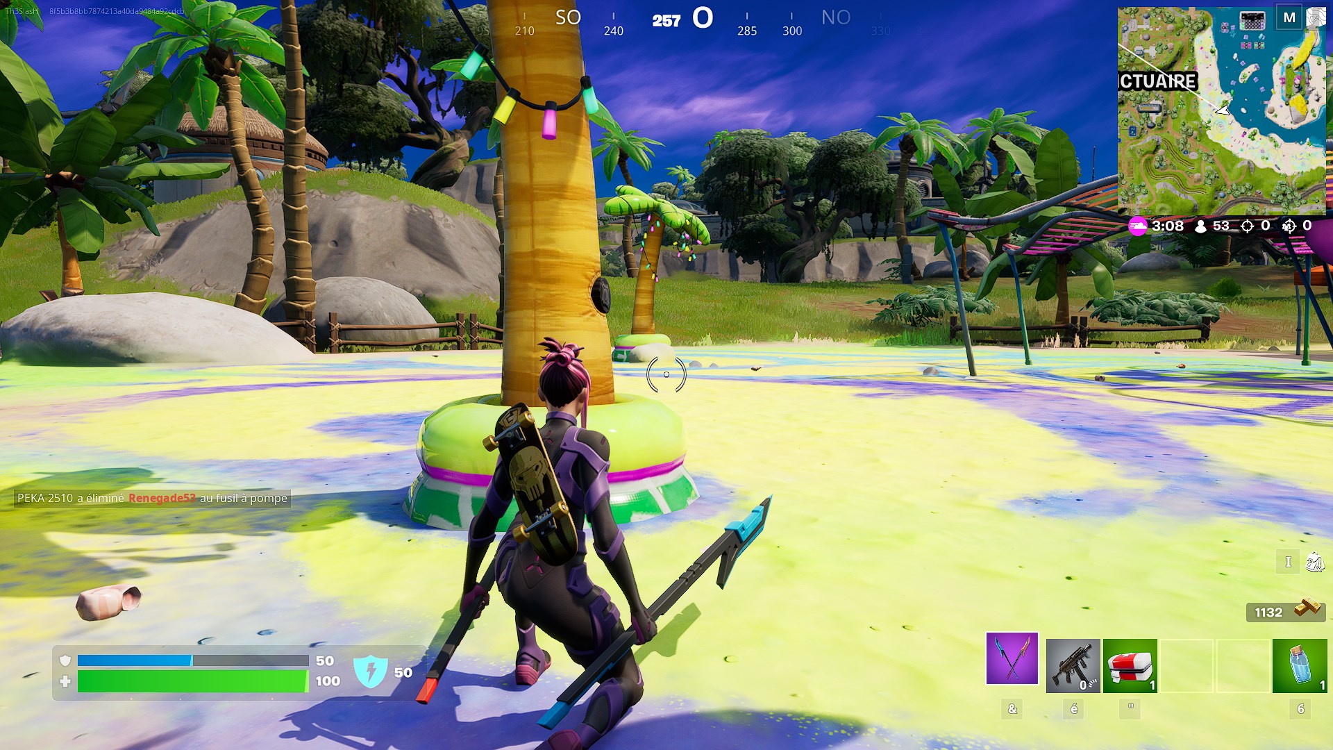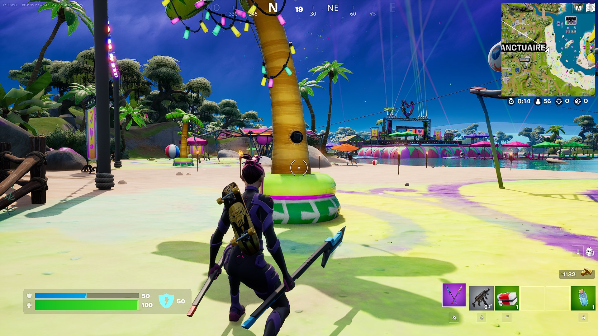 Les objets gonflables Au calme à éclater se trouvent à l’emplacement des bulles bleues (crédits : Fortnite)