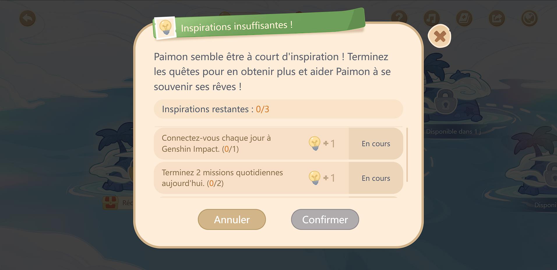 Une fois les objectifs complétée, vous allez pouvoir constituer des souvenirs de Paimon, et ainsi obtenir une récompense dès qu’un souvenir est débloqué. Nous vous rappelons que cette