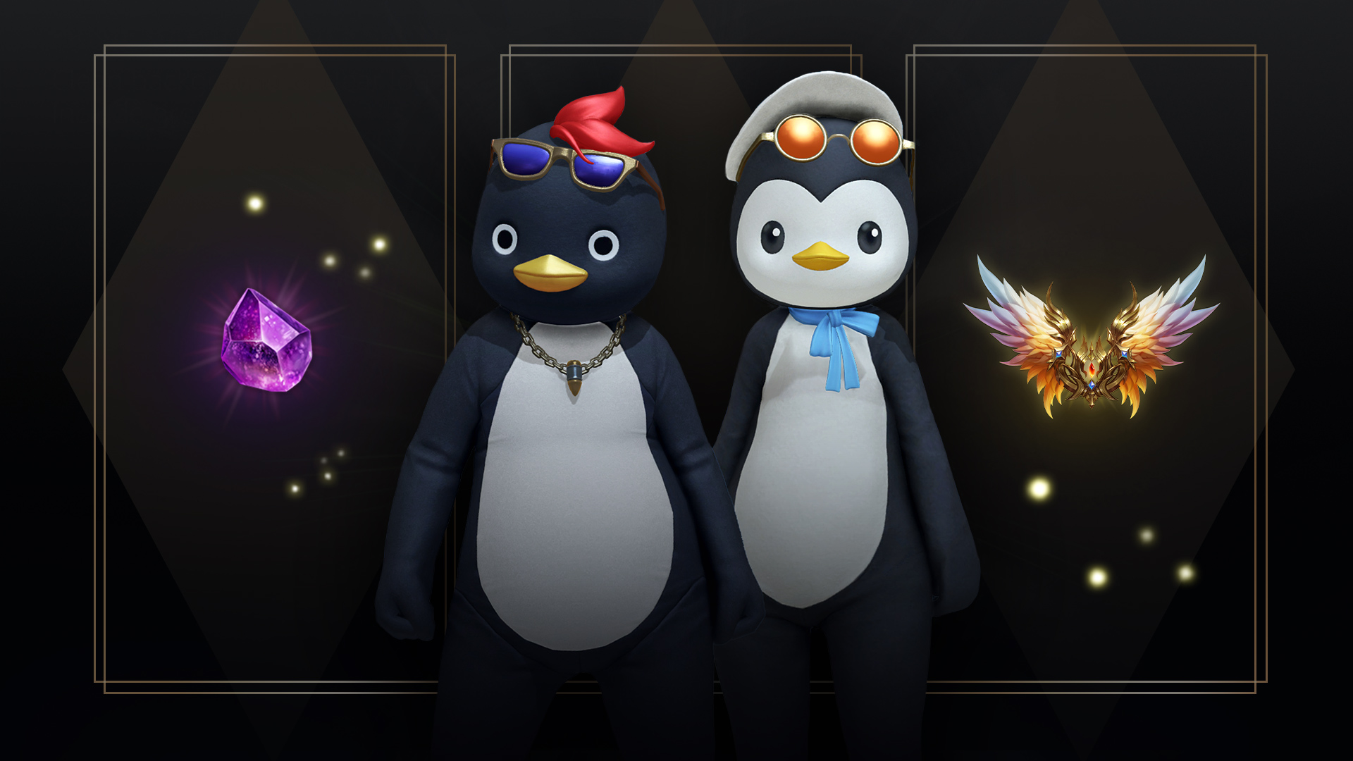 de sélection d’apparence Pingouin ainsi que cinq jours d’aura cristalline et un pack de fragment d’améthyste contenant 500 fragments ont été ajoutées à votre butin dans le