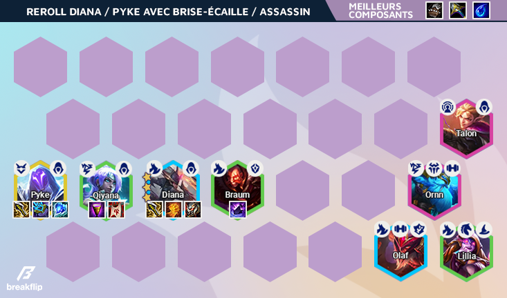 La compo Brise-écaille (Scalescorn) et Assassin Reroll avec Diana et Pyke au Set 7 de TFT