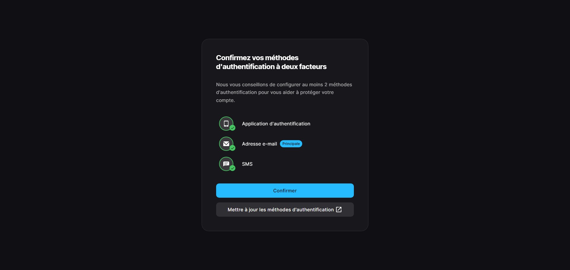 Bien sûr, vous pouvez changer de méthode à tout moment en configurant les trois et vous pouvez choisir celle que vous préférez. La connexion en A2F vous protège presque