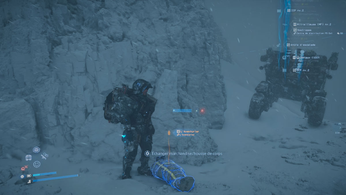 L’aventurier se trouve sur une cornique rocheuse de la montagne, il te suffit de faire le tour en montant vers la gauche pour le trouver. Pour vous aider, vous pouvez utiliser votre scanner en