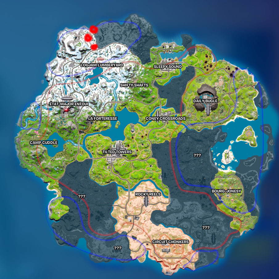 Pour valider ce défi et remporter de l’expérience sur votre pass de combat, vous devez vous rendre à trois emplacements spécifique dans Fortnite au nord de