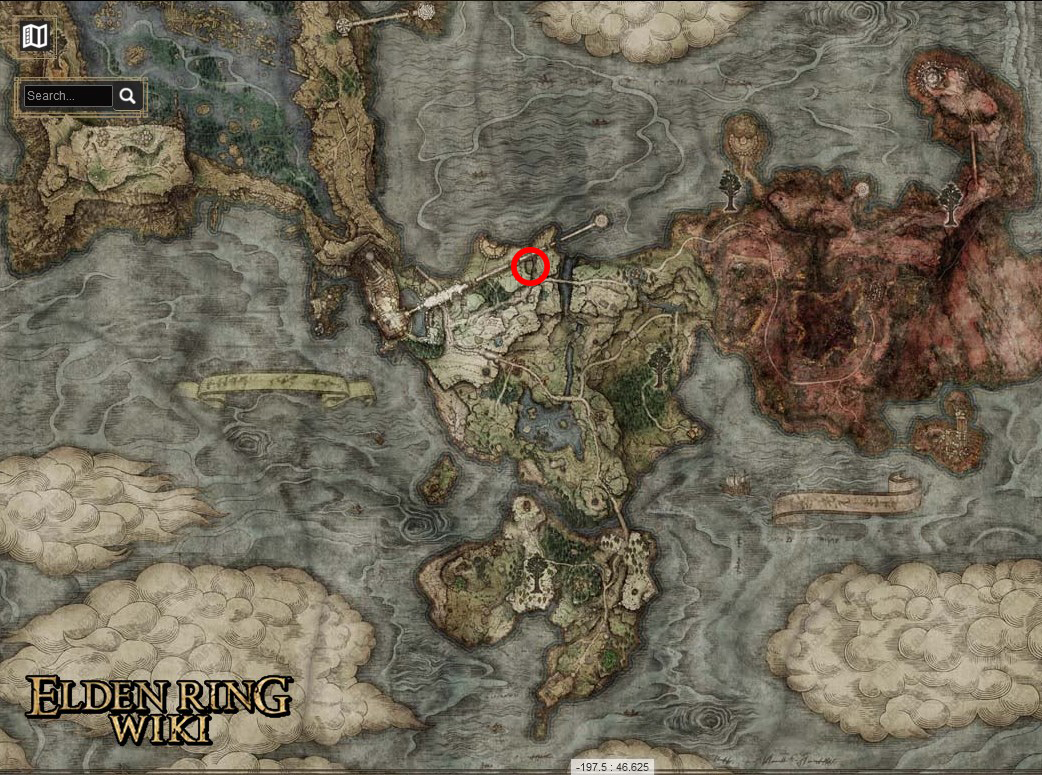 Pour trouver l’arme dans les catacombes, commencez par vous rendre à Limgrave. C’est ensuite à l’endroit indiqué sur la map ci-dessous que vous devrez aller, puisque c’est à cet emplacement que se