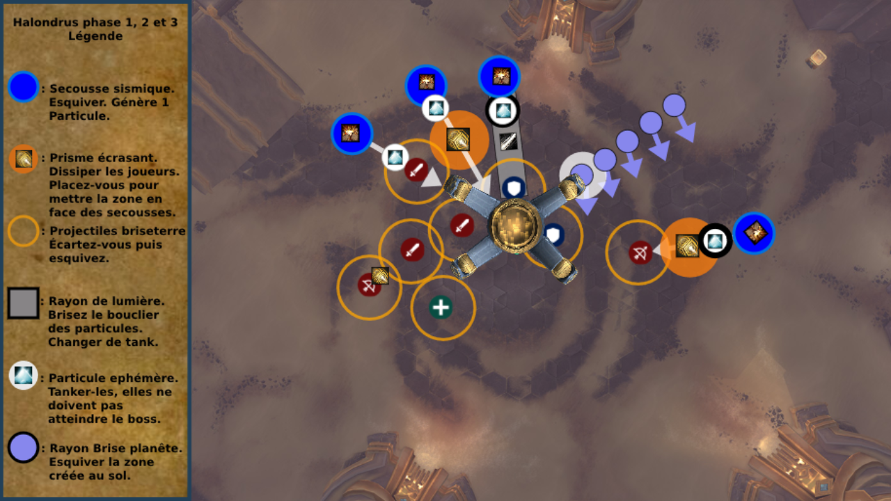 crée une AoE (Area of Effect) qu’il faut esquiver puis une orbe par secousse avance vers le boss. Si cette orbe touche Halondrus elle explose ce qui peut facilement mener au wipe.