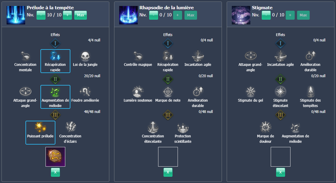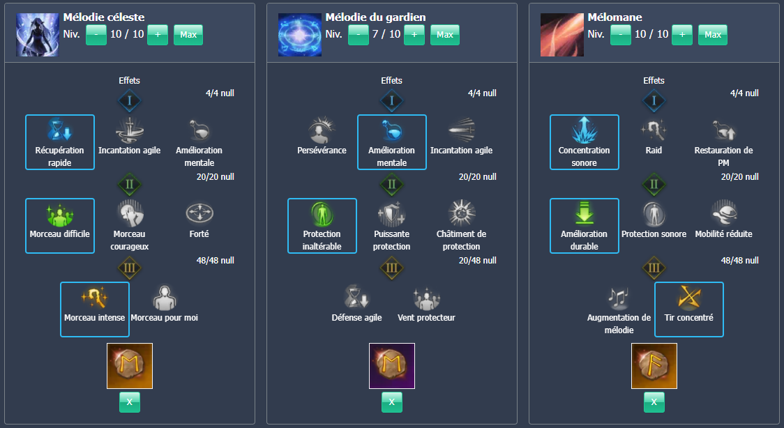 afin de réduire le temps de rechargement de 14% pour les skills concernés. Pensez aussi à mettre une gemme d’annihilation de niveau 7 sur Choc sonore, Mélomane, Prélude à la