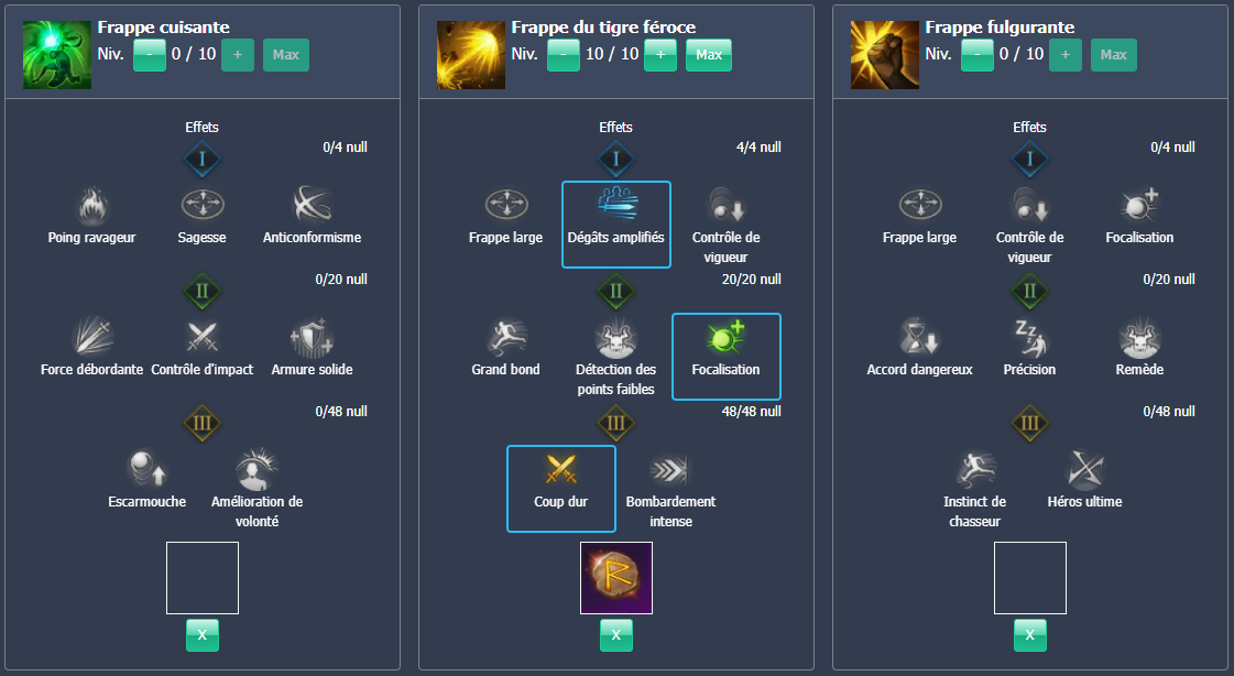 placer cette gemme sur la compétence Coup plongeant. Enfin pour ce qui est des compétences et des runes, voici ce que nous vous conseillons.
