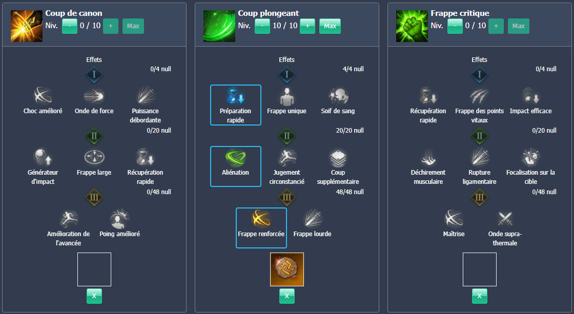 pour le Pugiliste Entrainement de choc qui est orienté sur les dégâts, nous vous proposons le build conseillé par Senseilekam (source).