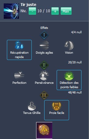 7 pour Flèche atomique, Tempête de lames, Tir juste, Vague de flèches, Tireur précis, pour augmenter les dégâts de ces compétences de 21%. Enfin pour ce qui est des compétences et des