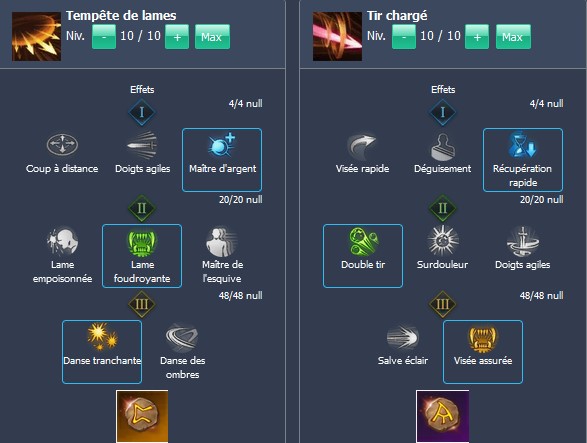 juste, Vague de flèches, Tireur précis, afin de réduire le temps de rechargement de 14% pour les skills concernés. Pensez aussi à mettre une gemme d’annihilation (nemesis) de niveau