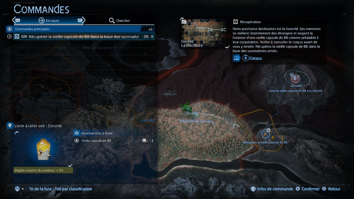 Ouvrez votre bague terminale et regardez les indications de la mission en haut à droite de votre écran. En plus des objectifs consistants à récupérer la capsule de BB et de la livrer à la