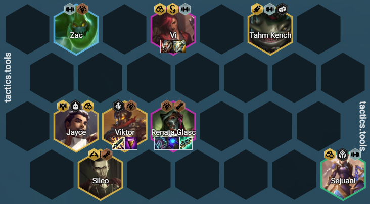 Le niveau 9 est une condition de victoire dans ce genre de composition. Il vous permet d’augmenter vos chances d’avoir Viktor, Tahm Kench et Silco 2 étoiles, et d’ajouter un