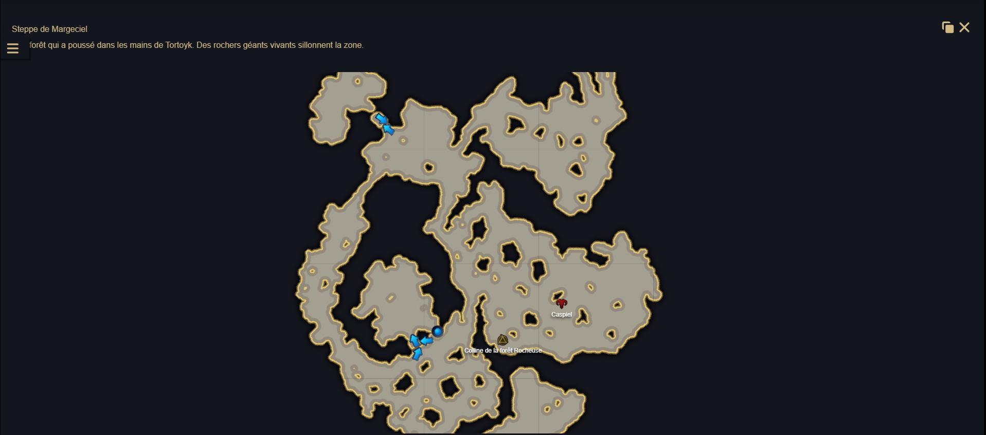 plus précisément à la Steppe de Margeciel. Un point de téléportation, celui de la Colline de la forêt Rocheuse est à proximité de cet ennemi comme vous pouvez le voir sur la carte