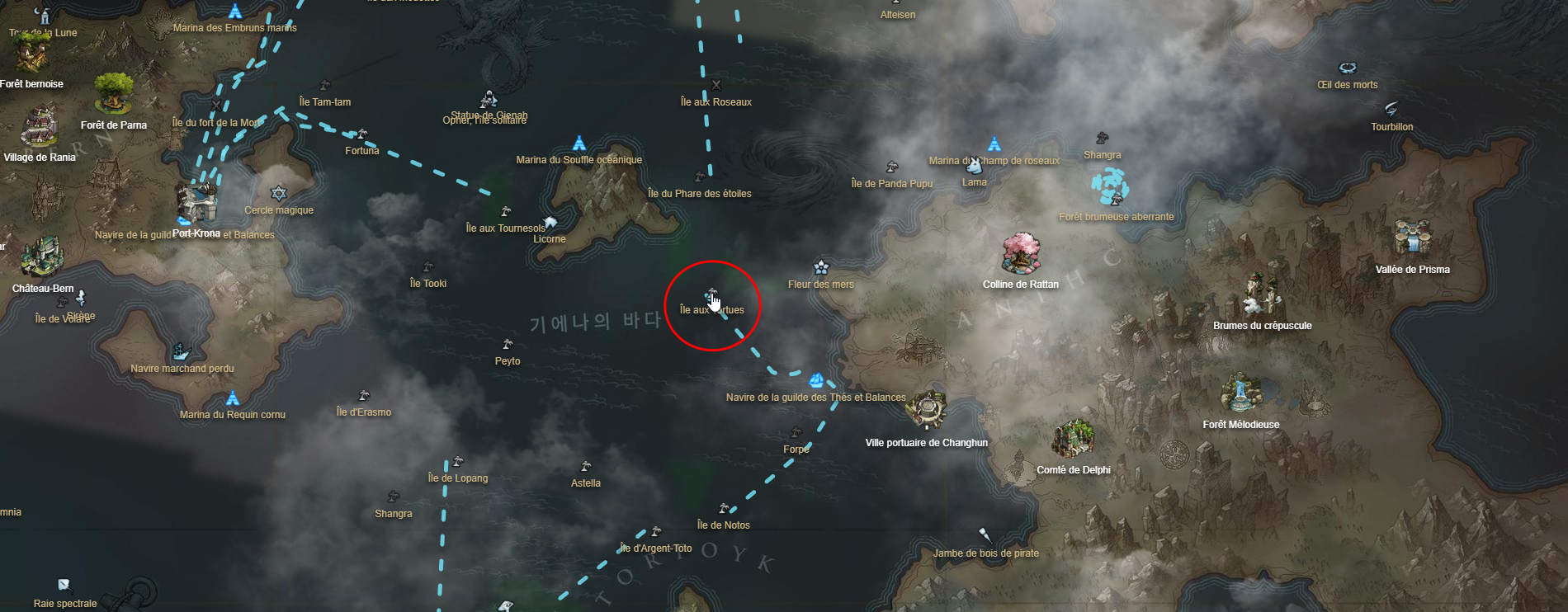 idée de l’emplacement de cette île, voici une carte basée sur la carte interactive de Lost Ark Online.
