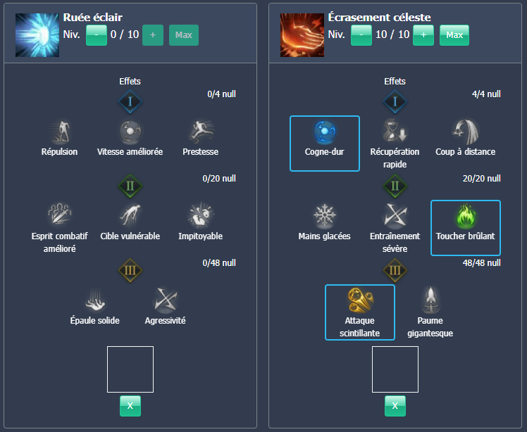 | 15 | Mettez 16 points dans Paume destructrice pour débloquer l’amélioration Attaque préparée et 4 points dans Écrasement céleste pour faire plus de dégâts |
