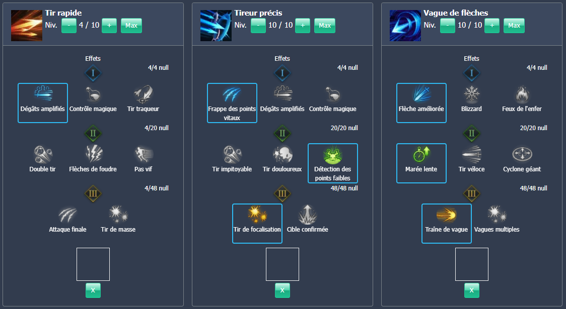 . Dans les derniers niveaux, essayez d’aligner les ennemis afin de faire un maximum de dégâts avec Tireur précis et Vague de flèches.