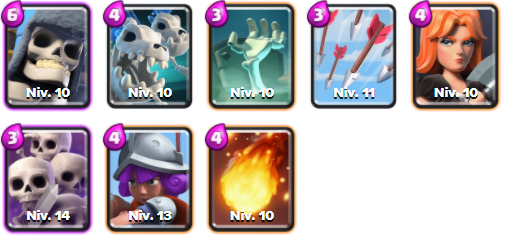 Ce deck est plus agressif car il utilise une carte tank. Pour commencer, placez le Squelette géant en fond de map pour récupérer de l’élixir. Une fois qu’il arrive au pont, placez