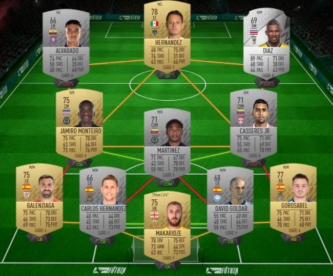 Notre exemple de solution pour le défi Atlético Madrid vs Barcelone (via le créateur Futbin)