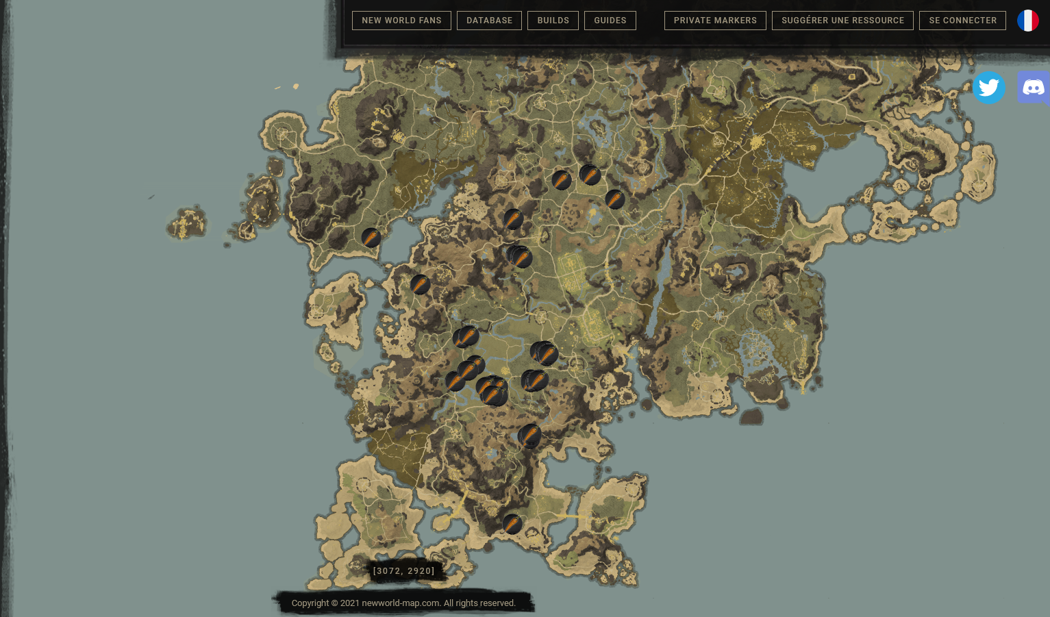 Emplacements de carottes dans New World. (crédits : newworld-map)