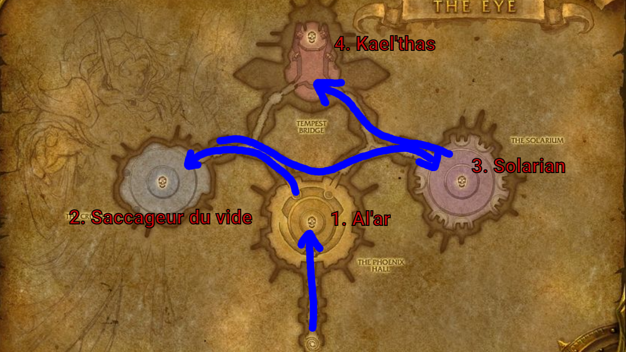 Arrivé dans la salle de Leotheras, vous devrez tuer trois adds et le combat contre le troisième boss commencera.