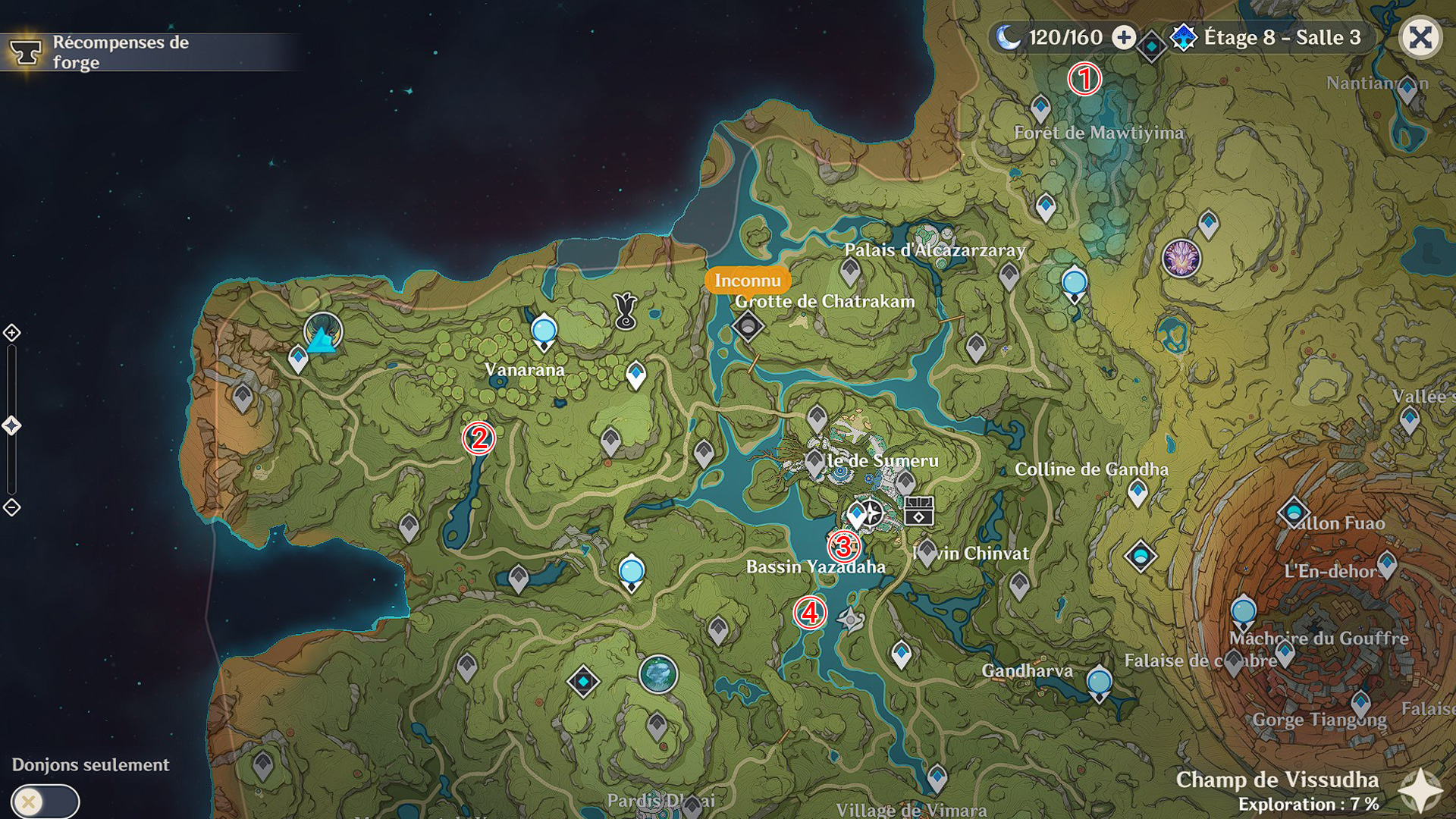 la quête Espèces en recrudescence disponible depuis la sortie du patch 2.1. Une fois cela, vous allez pouvoir vous rendre aux différents emplacements disponibles ci-dessous.