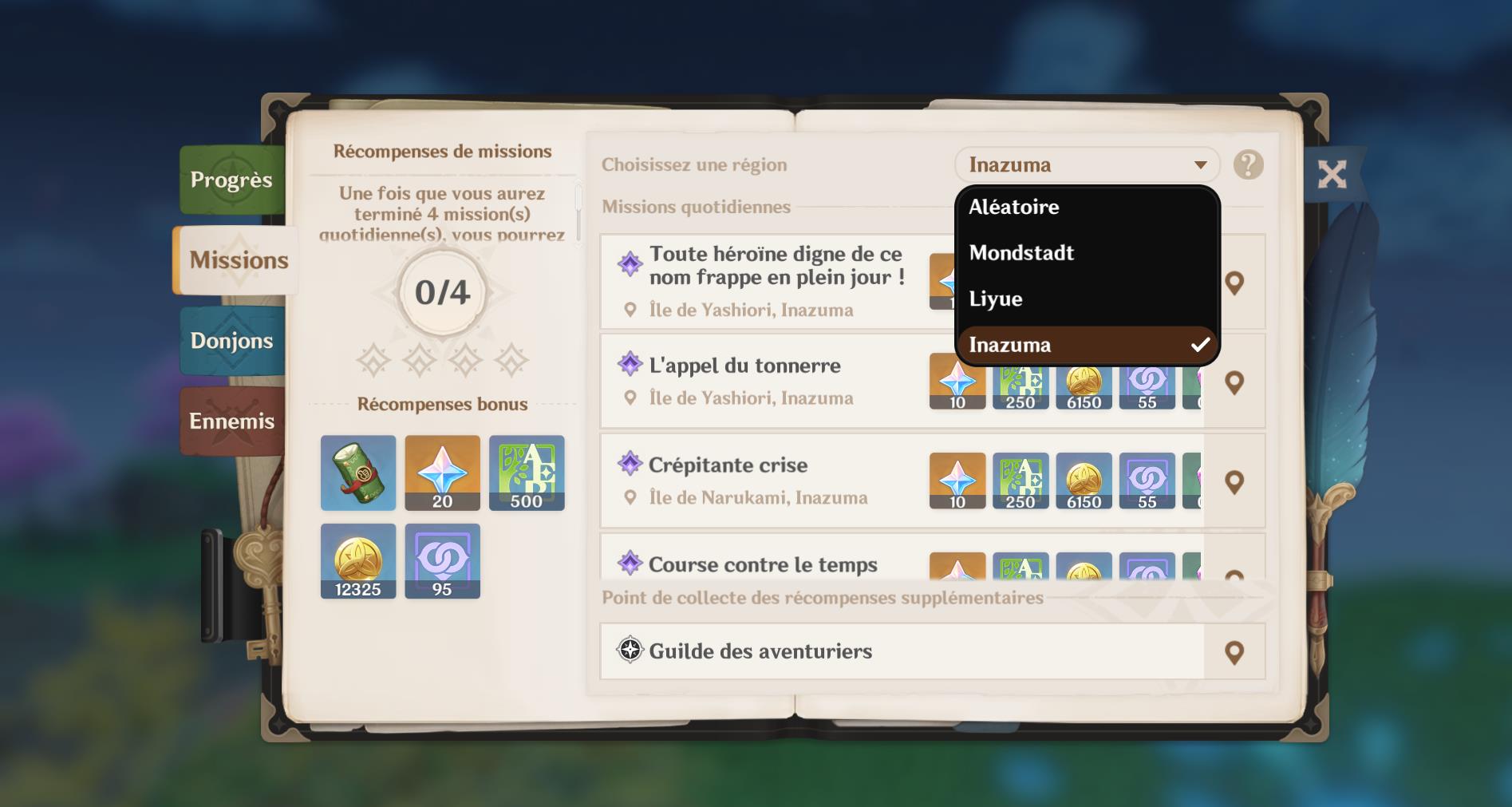 que des missions quotidiennes qui concernent Inazuma, vous devrez :