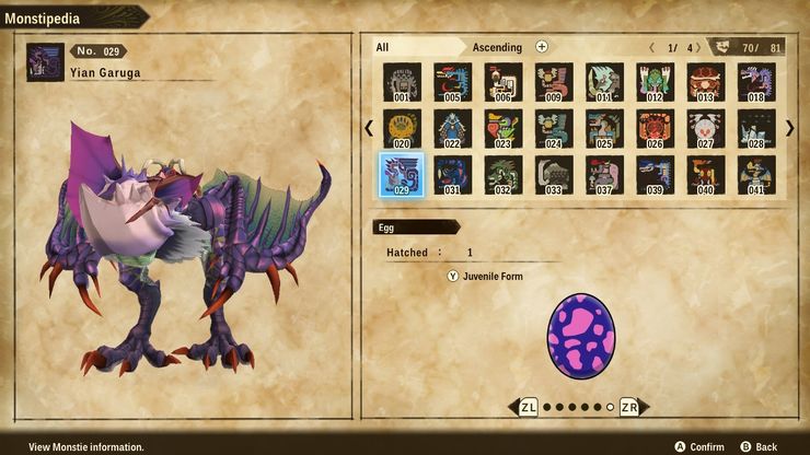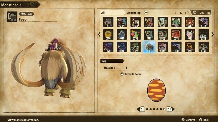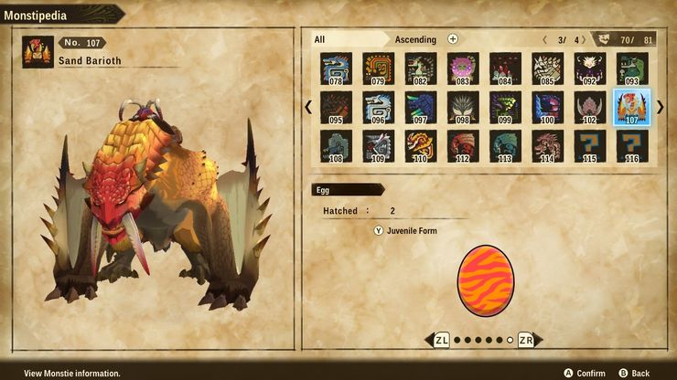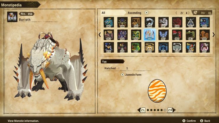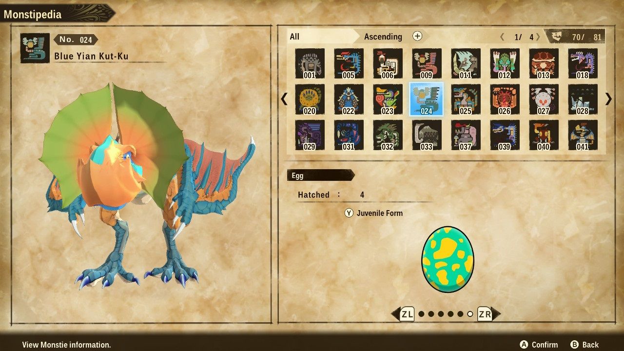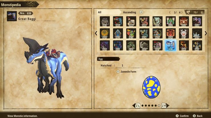 Monster Hunter Stories 2 liste monstre, combien y en a-t-il ?