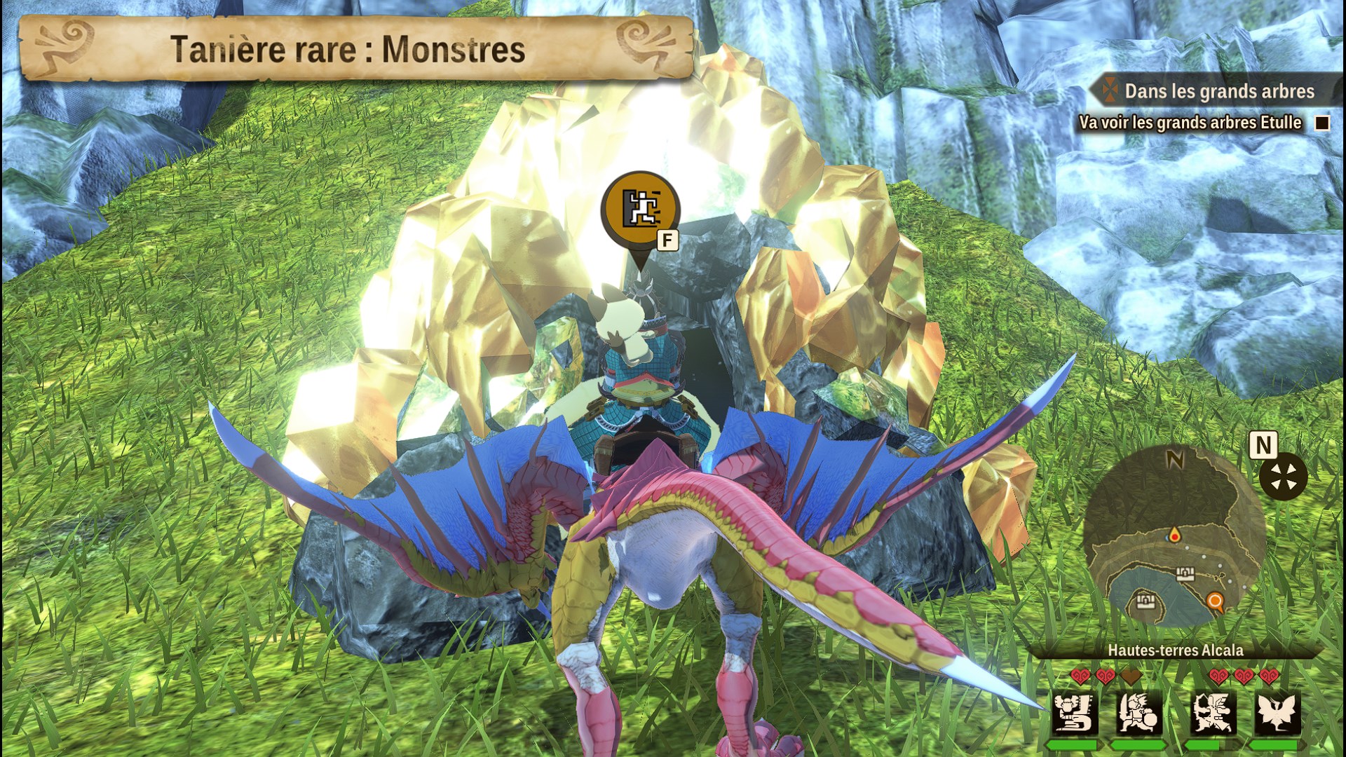 Pour pouvoir récupérer le meilleur œuf possible, il sera donc nécessaire d’explorer une tanière de monstre rare. Elle sera représentée par des rochers dorés comme vous pouvez le
