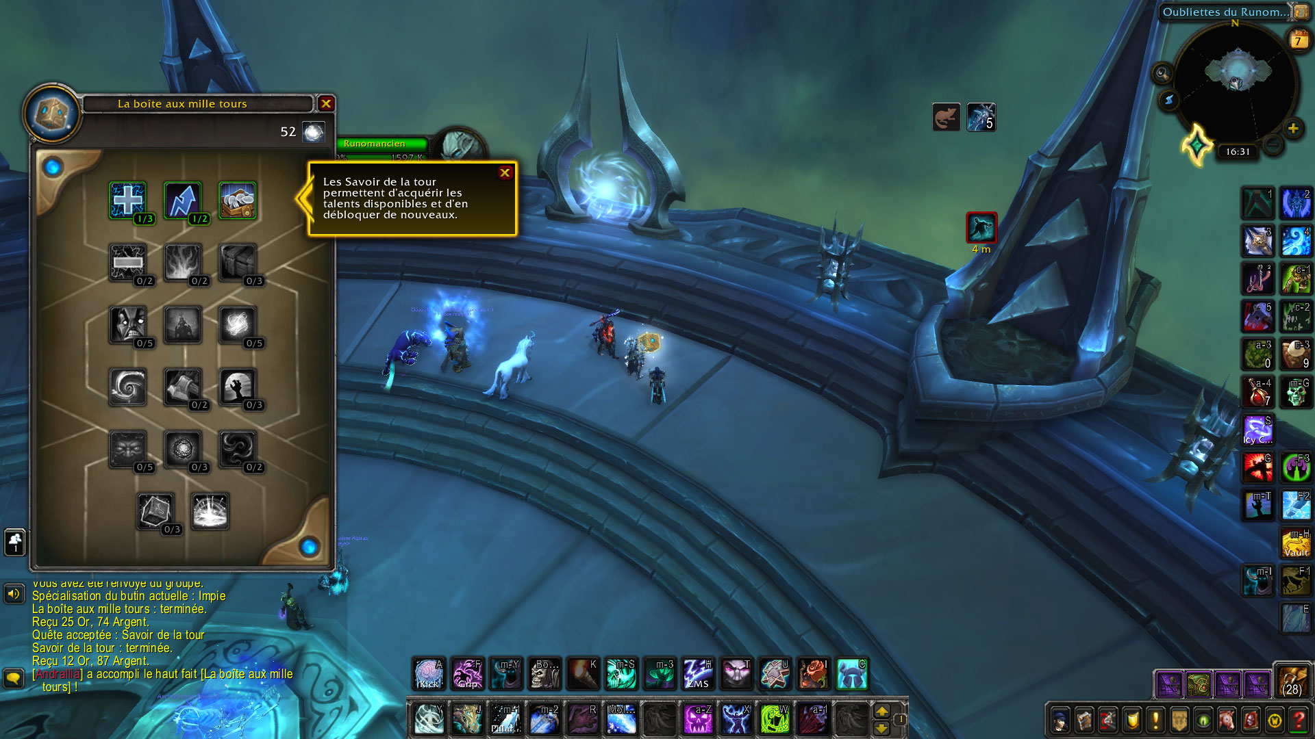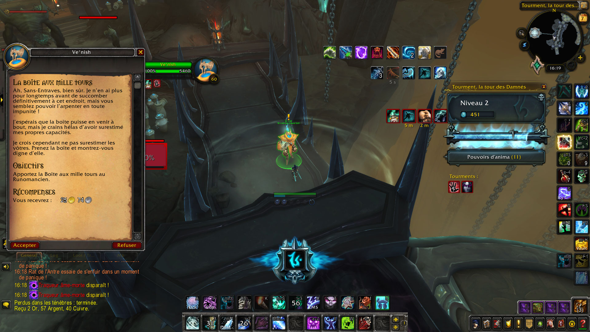 La seconde étape et de lancer une run de Torghast, vous trouver Ve’nish au deuxième palier de voter run, ce dernier vous remet la boîte au mille tours que vous devez ramener au runomancien afin de débloquer le Savoir de la Tour.