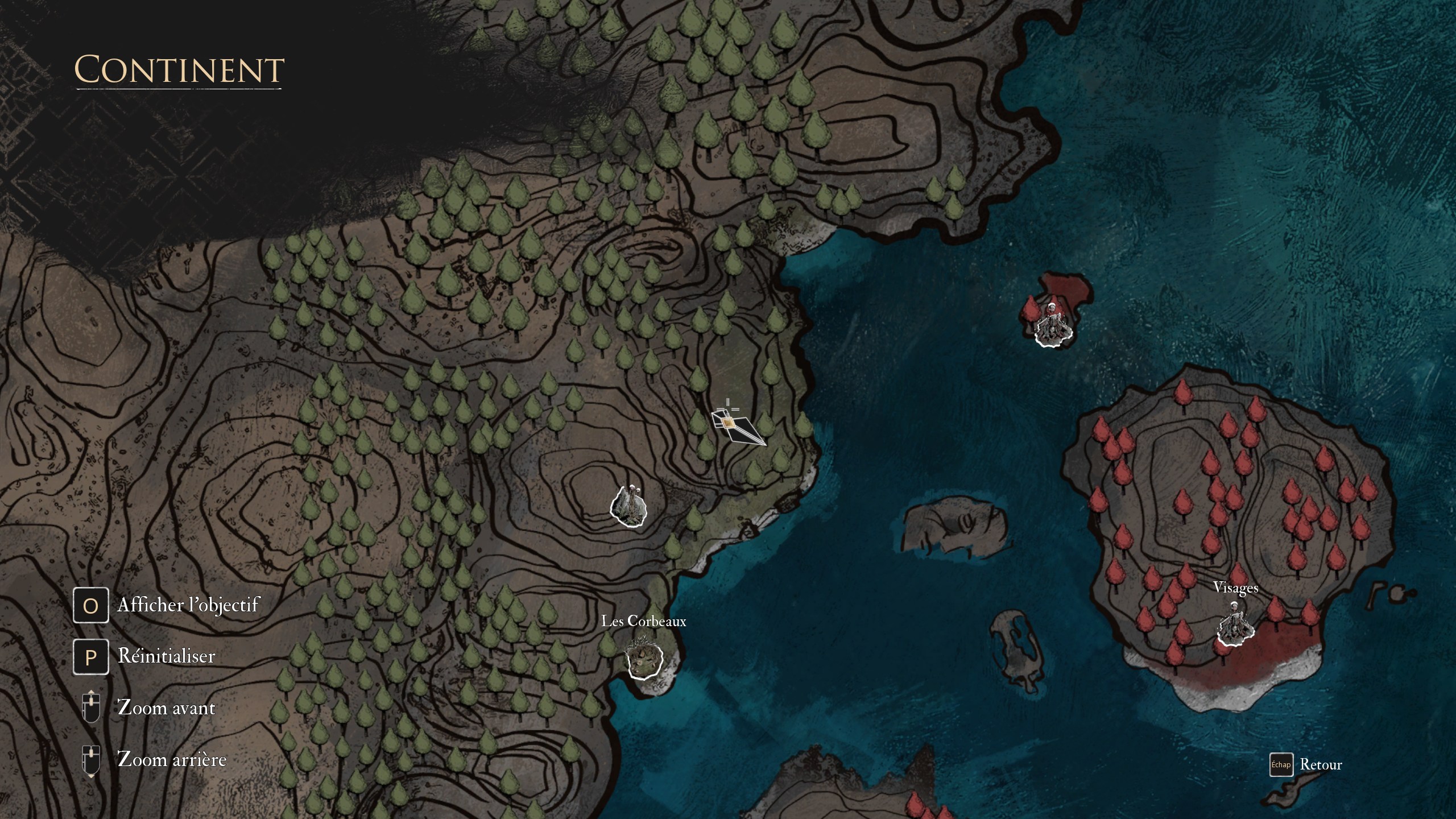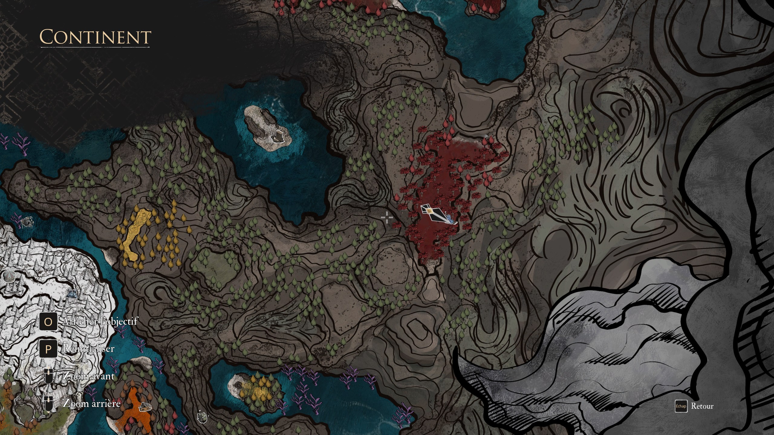Un peu en dessous de Visages, vous allez pouvoir trouver une île avec des arbres rouges et une vaste zone avec de l’herbe rouge. C’est sur cette île que vous allez devoir vous