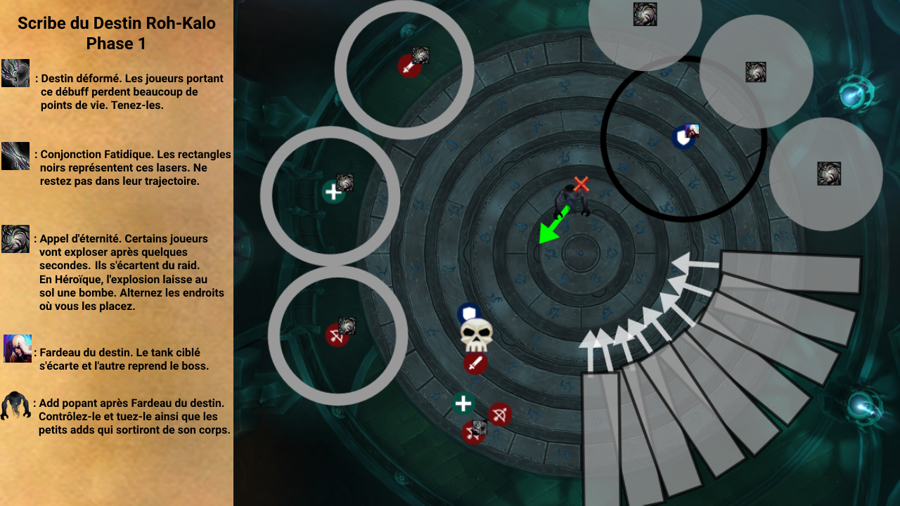 . Ces joueurs auront la mission de déplacer les runes dans leur emplacement pendant que le raid s’occupe des autres mécaniques.