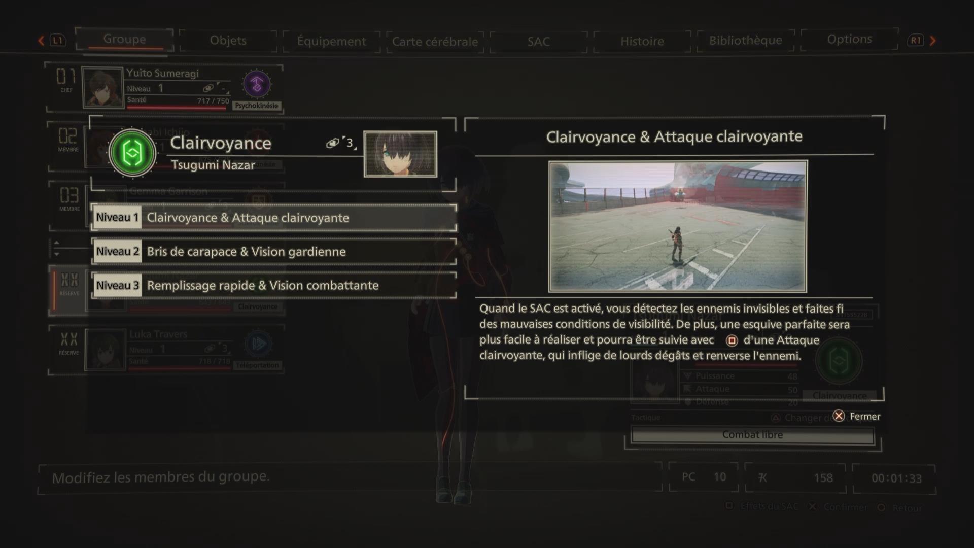 Pour rappel, grâce au pouvoir de Tsugumi, vous allez pouvoir réaliser plus facilement une esquive parfaite que vous pourrez suivre d’une attaque clairvoyante en appuyant sur la