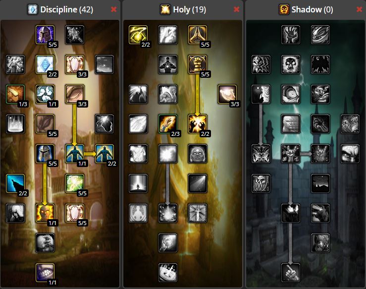 Retrouvez ci-dessous l’arbre de talents optimal du Prêtre Discipline sur World of Warcraft.