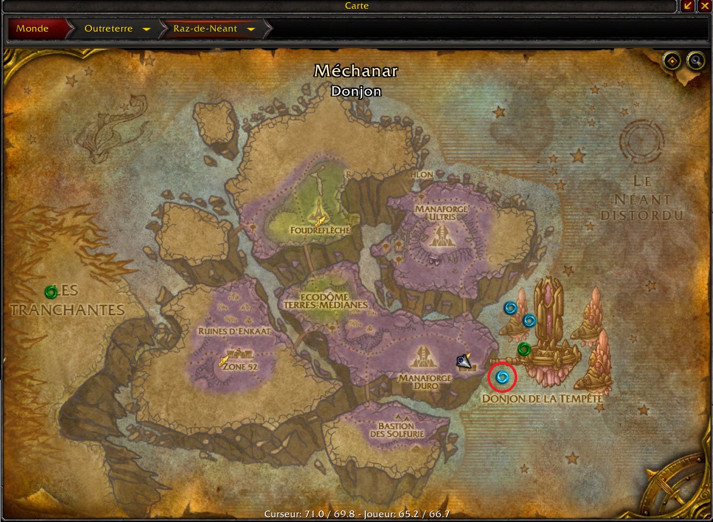 Le donjon Le Méchanar se trouve près de l’Arcatraz et du Botanica dans Raz-de-néant en Outreterre.