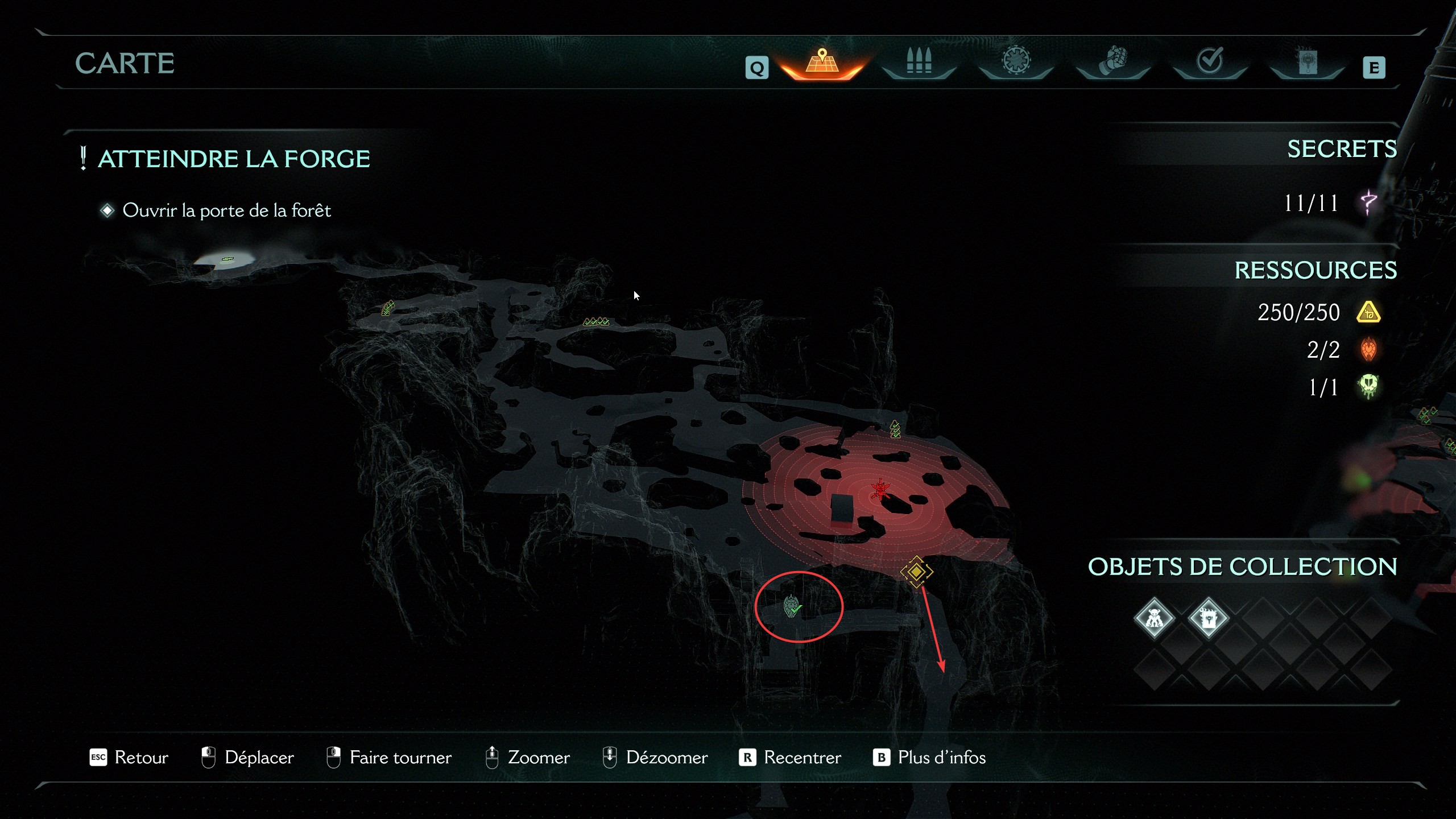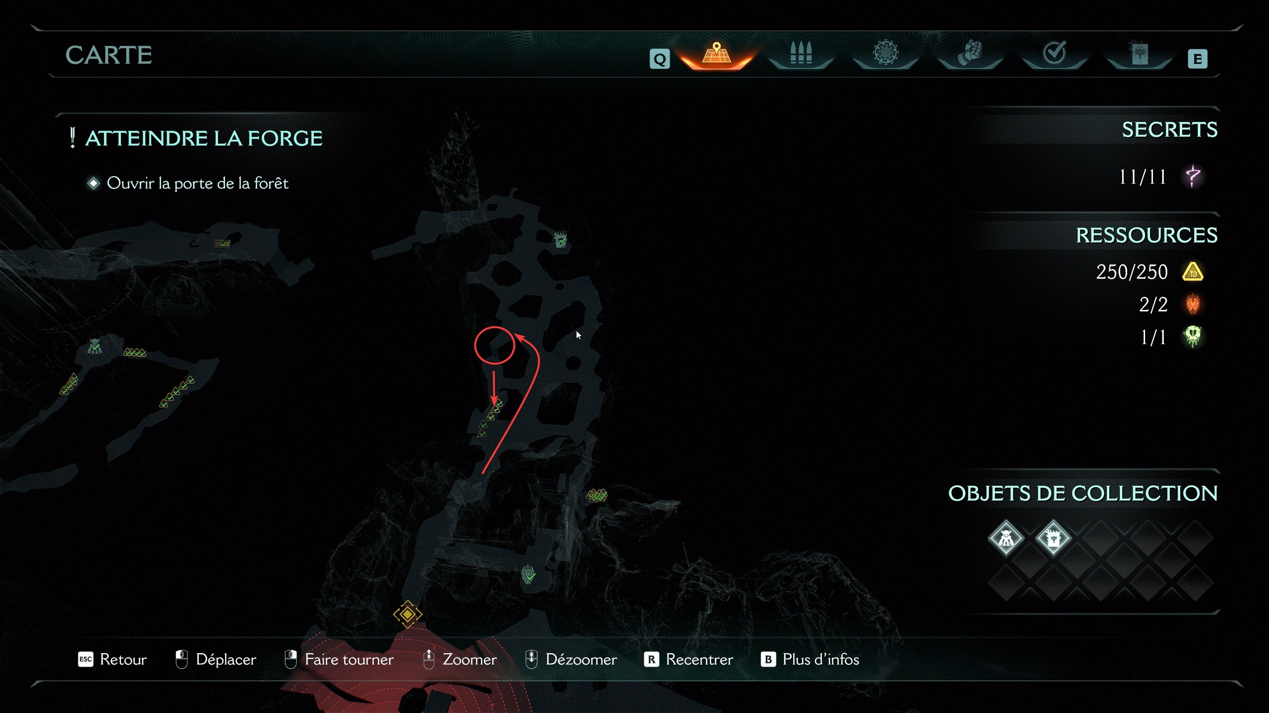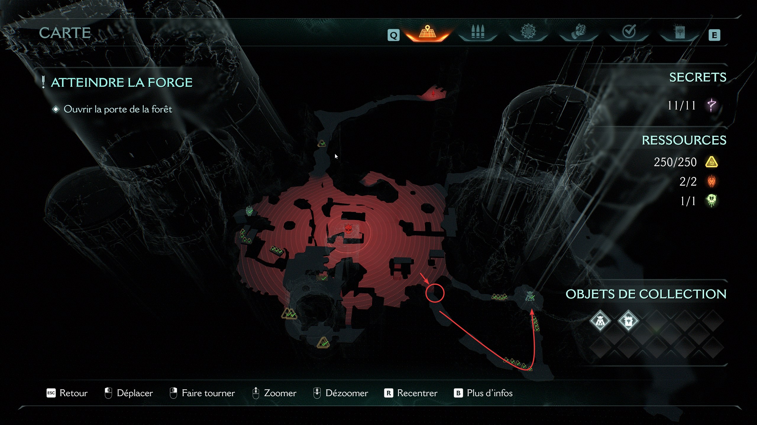 Pour le dernier collectible, allez dans un premier temps près des ruines avec les arches et un autel. Vous allez alors entendre un mécanisme à proximité, approchez-vous-en et vous allez voir un