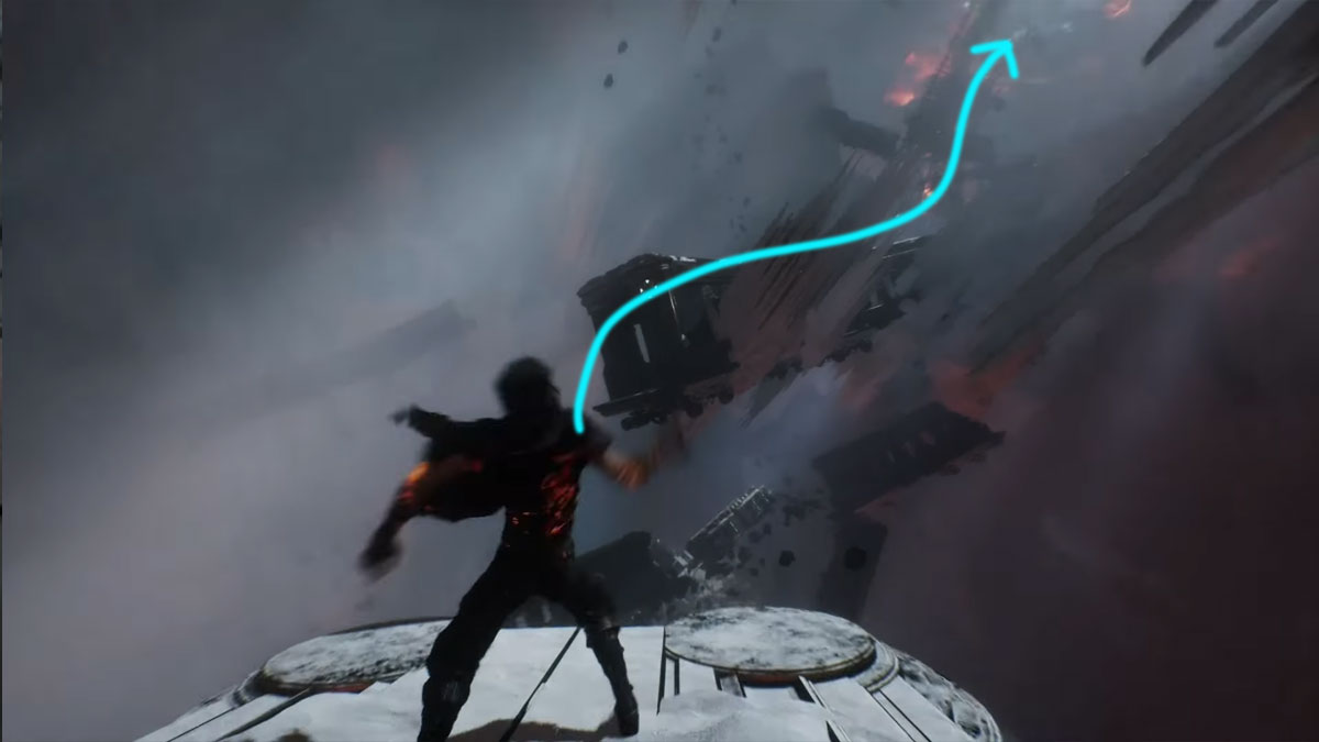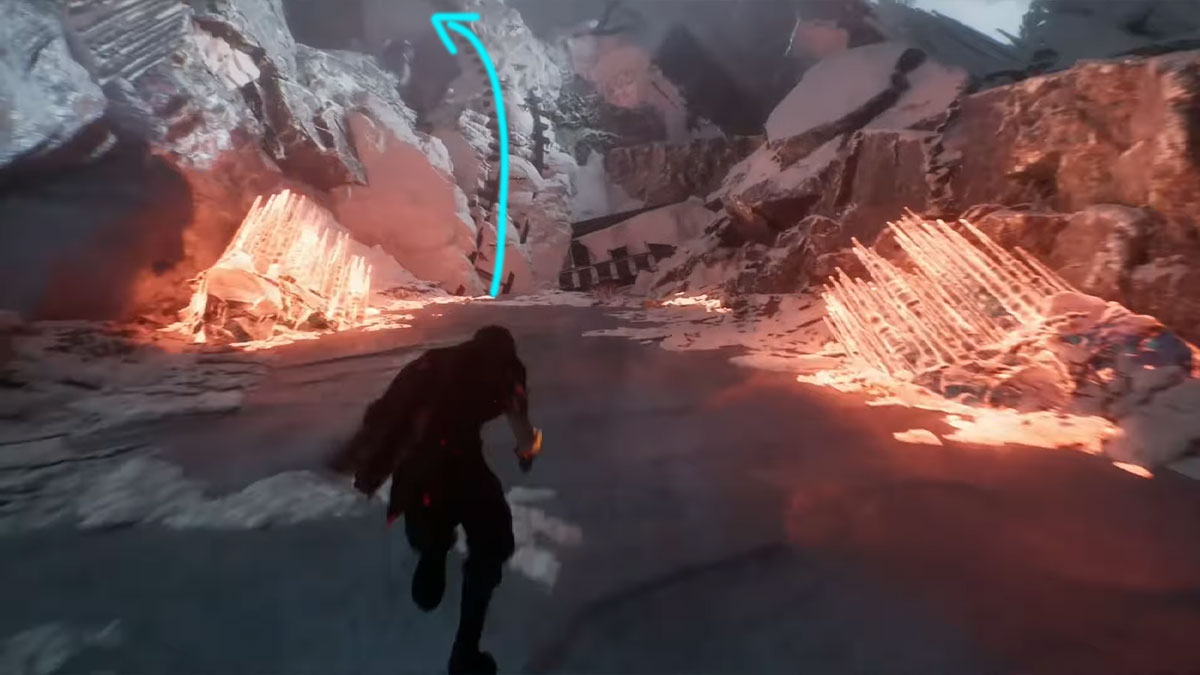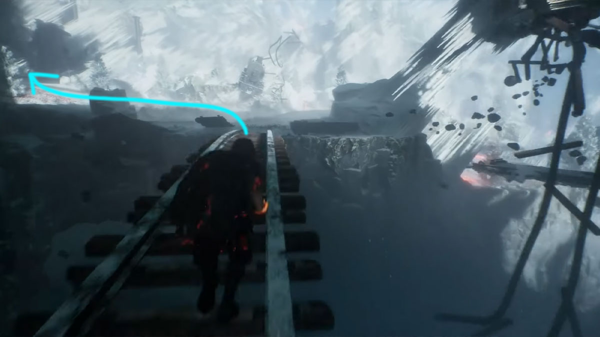 Depuis le drapeau Cœur Glacé, montez en utilisant l’épave de train et continuez à vous accrocher pour atteindre le sommet.