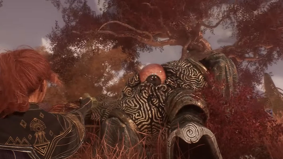 Pour l’instant, empruntez l’escalier. Au sommet, vous trouverez une grande statue. Un globe oculaire est incrusté entre ses épaules. Tirez dessus à l’aide de la
