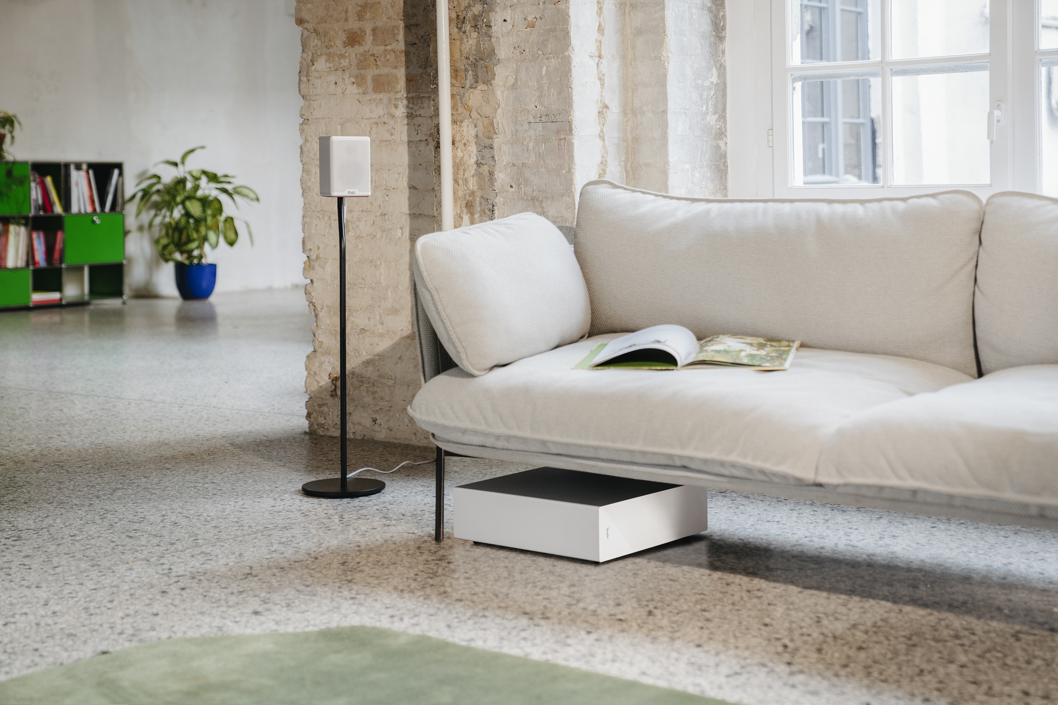 effekt-lifestyle-3970Le caisson peut se disposer à l’horizontale pour se glisser sous un canapé, par exemple. Et puisqu’il est sans fil,