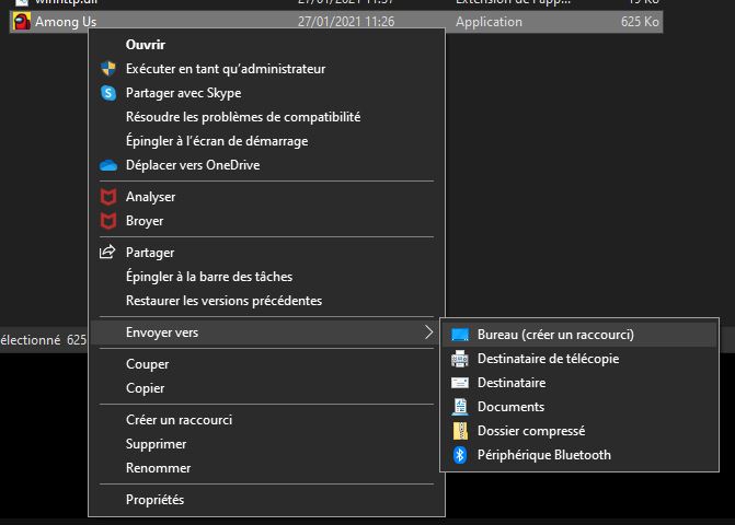 - il ne vous reste plus qu’à créer un raccourci vers le bureau vers permettant directement de jouer au mode Shérif d’Among Us ! Pour cela, effectuez un clic-droit sur le