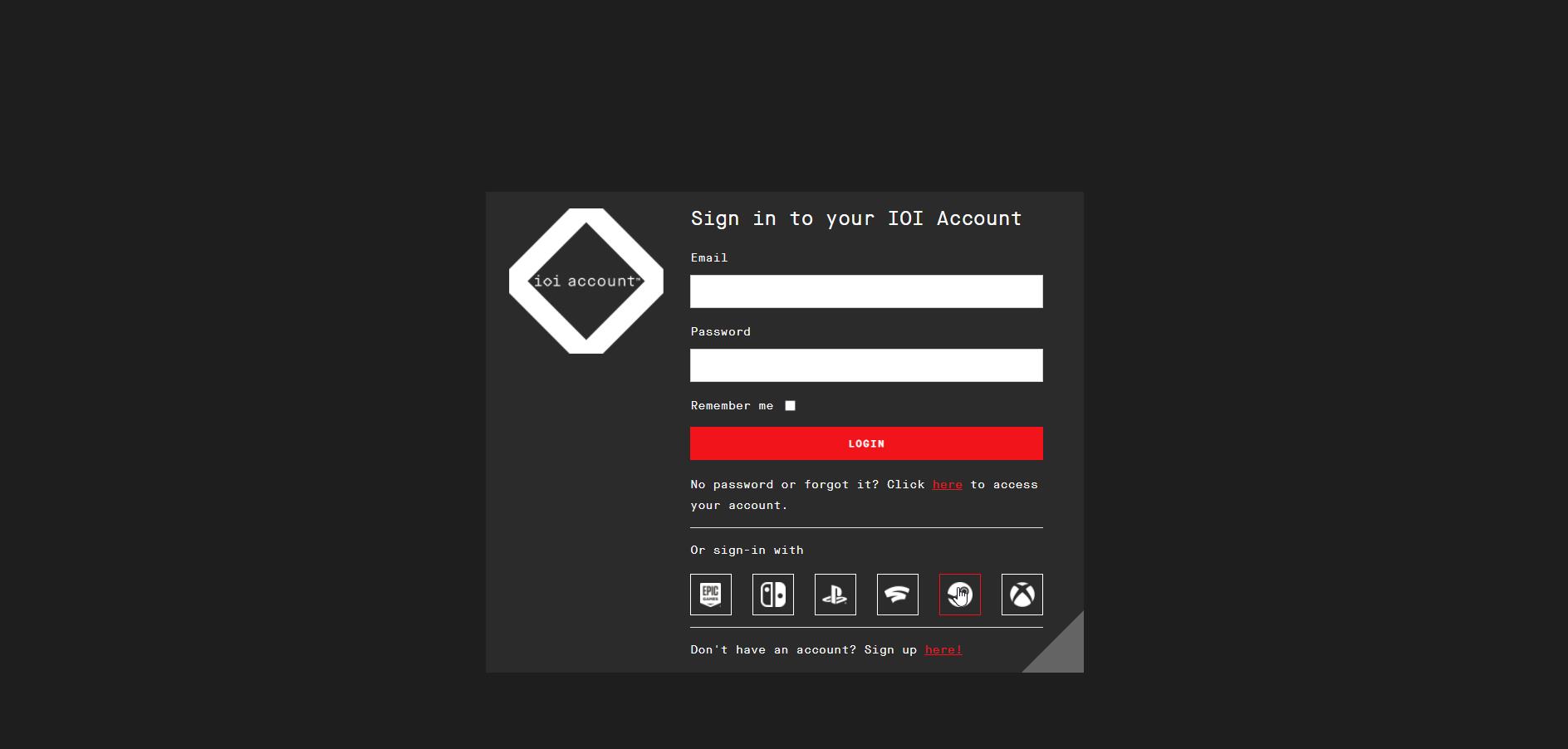 Sur cette page, vous allez devoir vous connecter à votre compte Io Interactive ou en créer un si vous n’en avez pas.