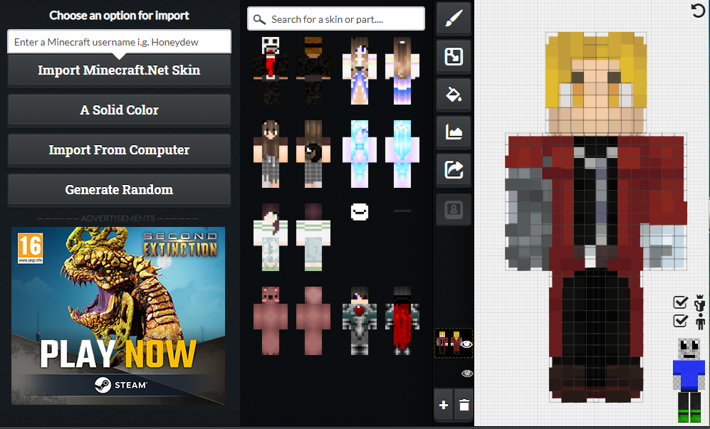 Au centre de la page vous retrouverez une galerie de skins modifiables et téléchargeables. Et tout à droite se trouve l’espace qui vous permet de modifier ou créer votre propre skin,