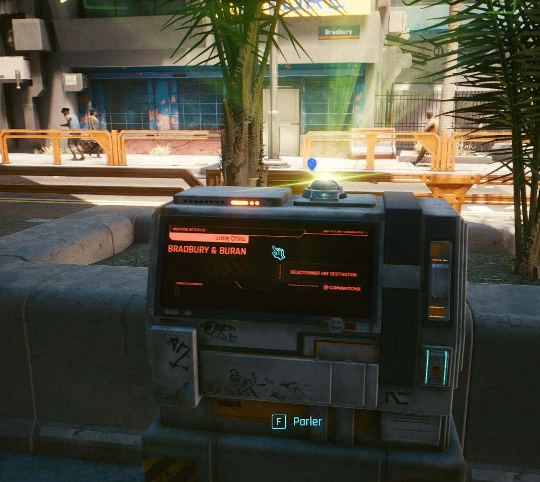 Comme pour The Witcher 3, où il vous était nécessaire de vous trouver à un carrefour et d’interagir avec les panneaux, dans Cyberpunk 2077, vous devrez interagir avec les bornes de voyage