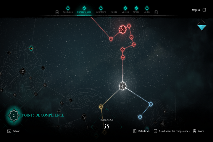 Chacune des compétences débloquées dans cet arbre augmentera votre niveau de puissance en plus de vous orienter vers un gameplay bien précis pour le combat.
