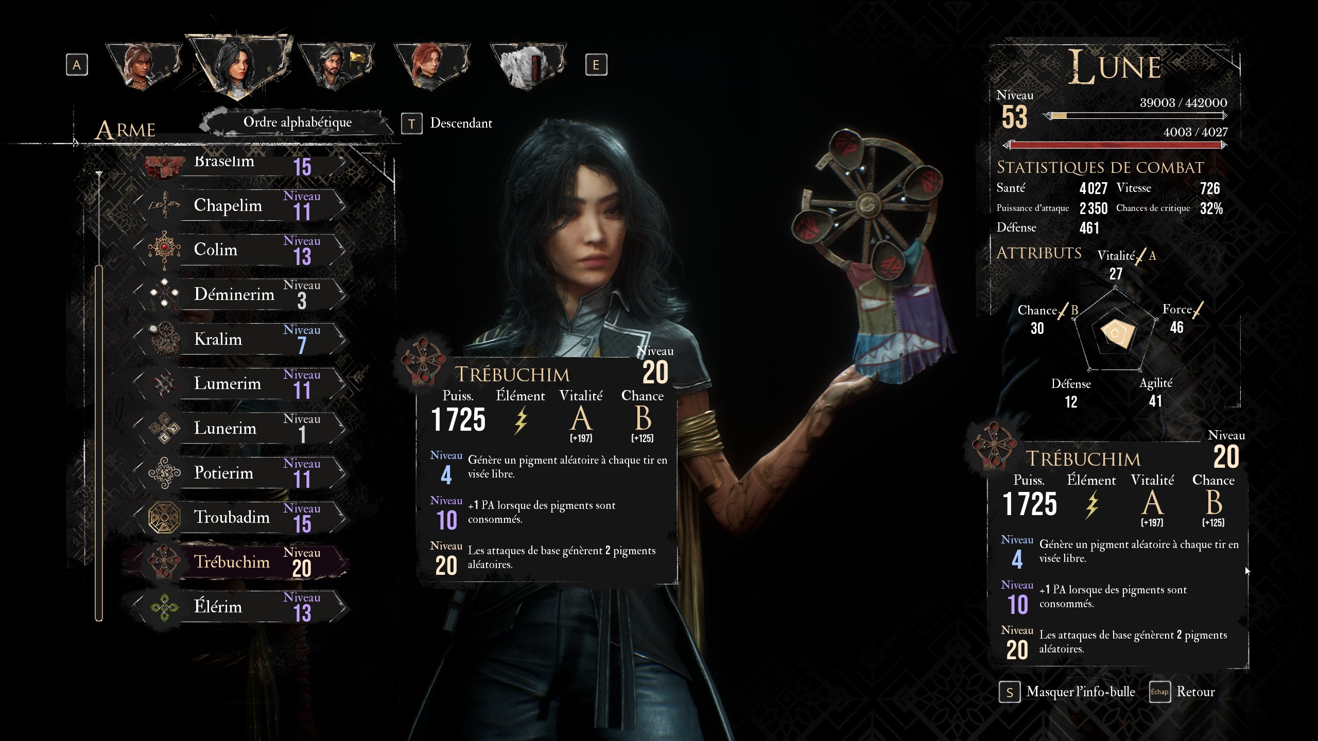 nous allons vous donner les armes que nous vous recommandons pour Lune, Maelle, Sciel et Verso.