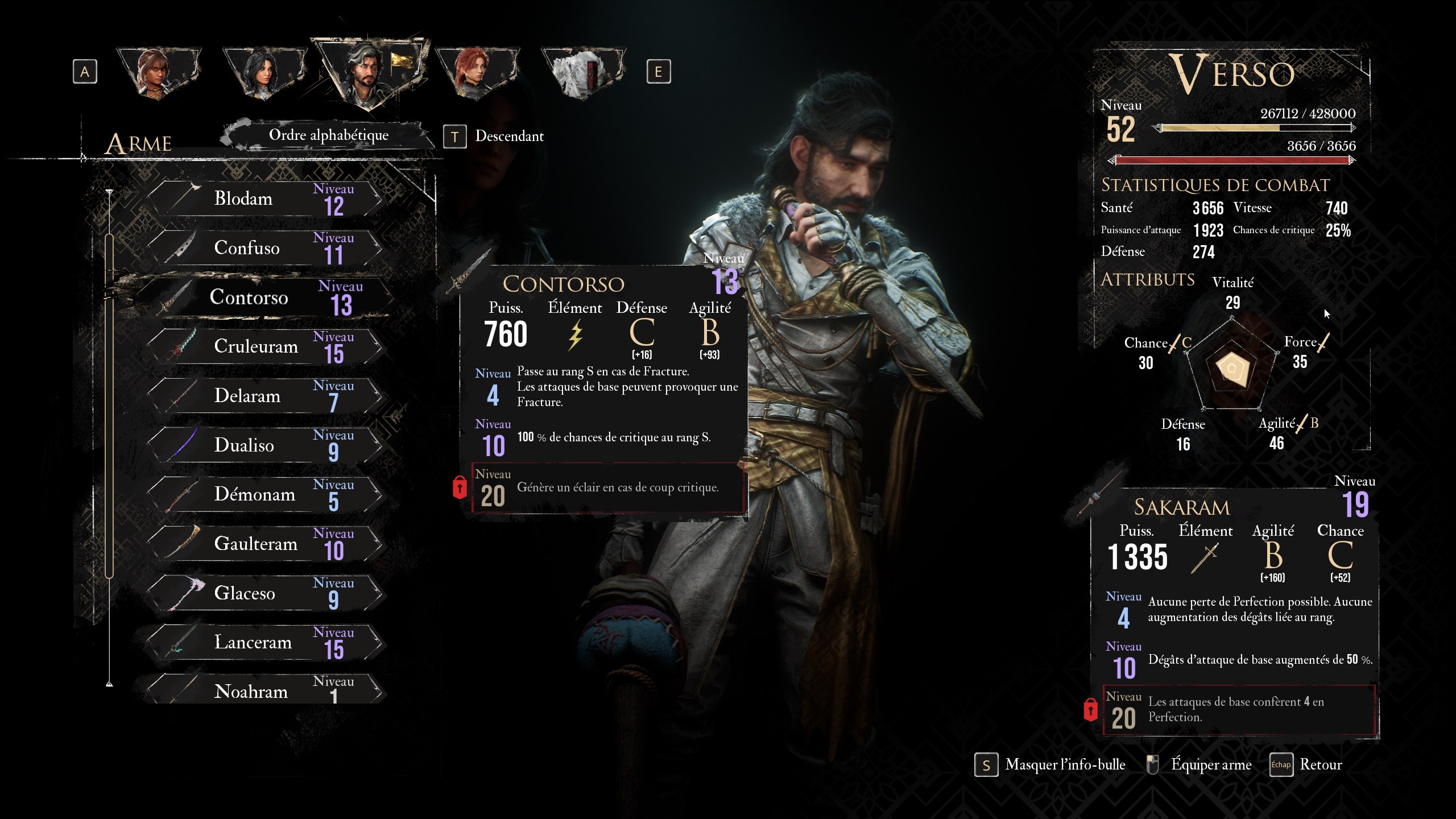La meilleure arme pour Verso, mais elle est relativement difficile à obtenir puisque vous allez devoir etre assez haut niveau pour vaincre le boss qui la détient, Simon. Elle est particulièrement recommandée pour le