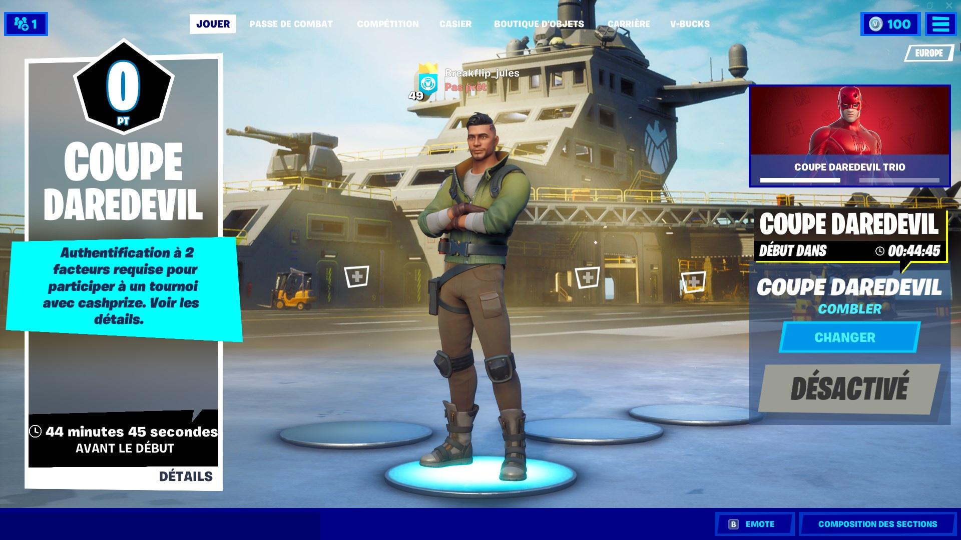 Vous devez être à 3 pour participer à la Coupe Daredevil et vous devez avoir activé l’A2F
