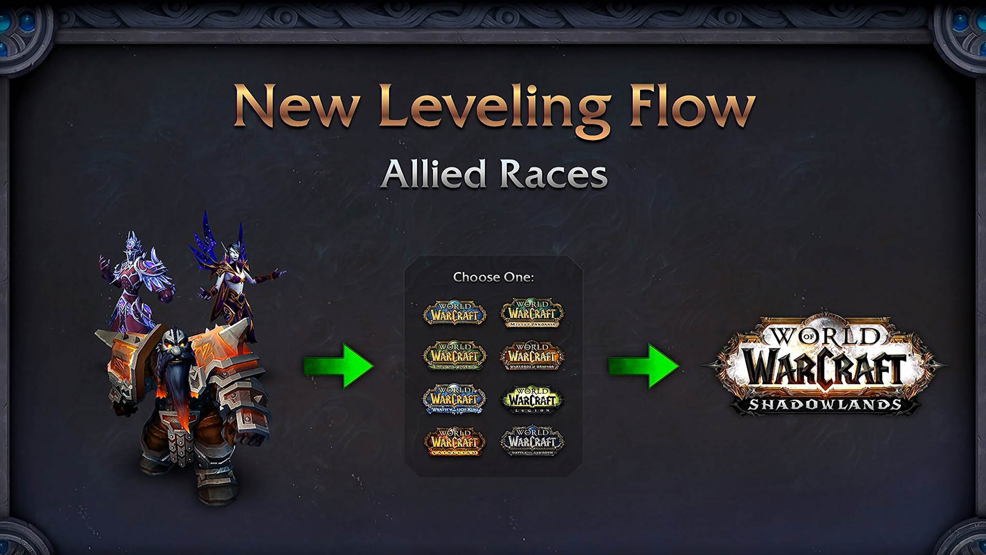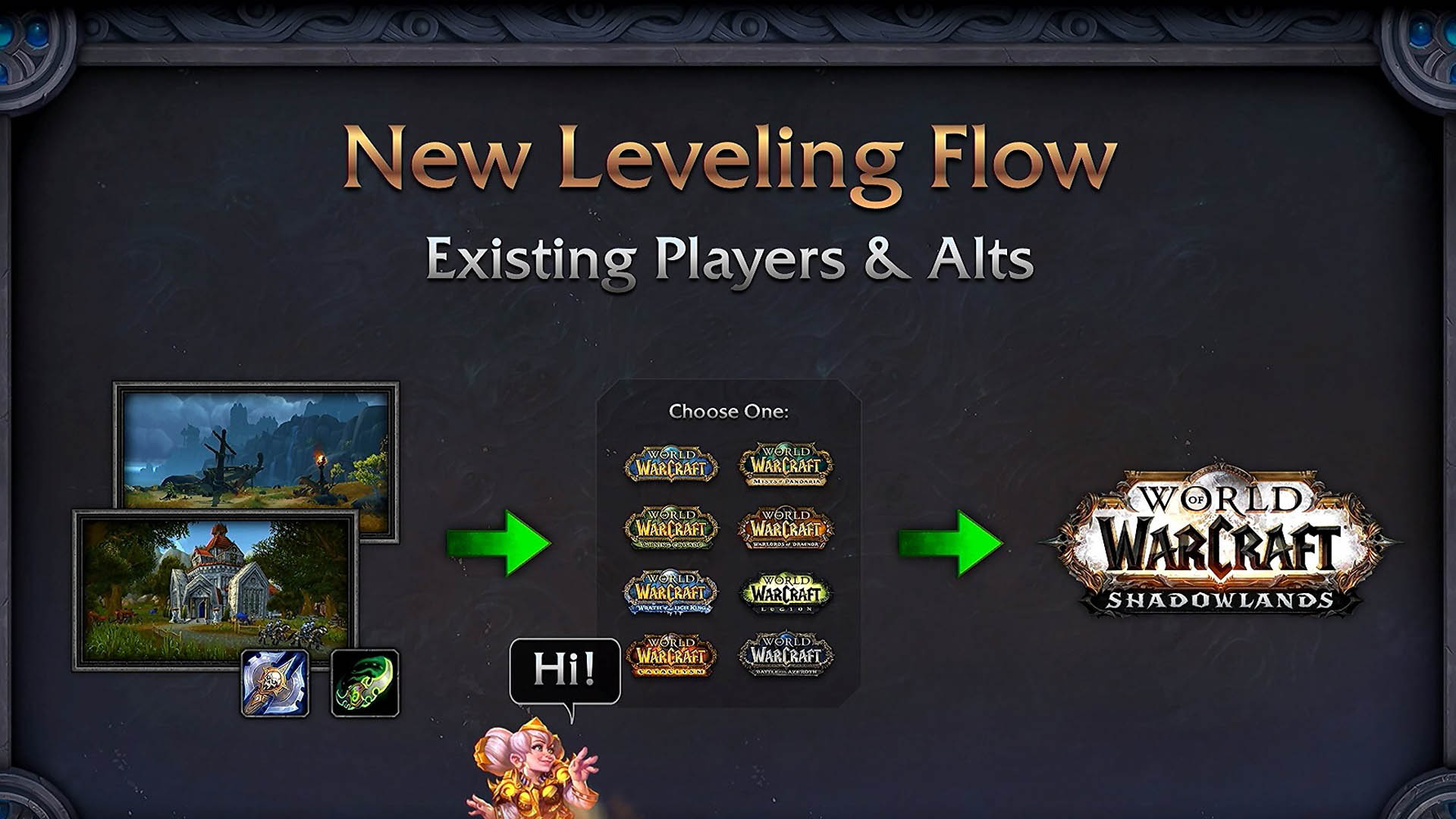Une fois niveau 10 les joueurs ont la possibilité de choisir une des sept extensions de World of Warcraft ou la version Vanilla. Cependant les nouveaux joueurs doivent