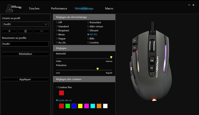 En ce qui concerne le logiciel celui-ci se révèle être très complet, facile à prendre en main et permet de régler les fonctions des différents boutons ainsi que les couleurs du